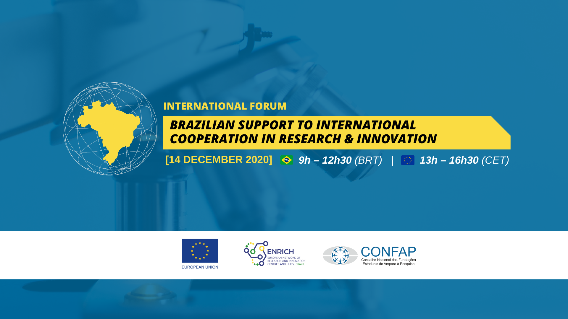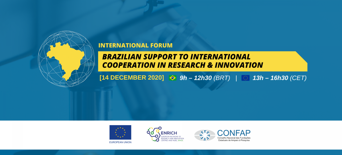 Na segunda-feira (14/12), às 9h (horário de Brasília-DF), o Conselho Nacional das Fundações Estaduais de Amparo à Pesquisa – Confap, no conjunto de suas Fundações, com o apoio da União Europeia e do ENRICH in Brazil, realizará o Fórum Internacional “Brazilian Support to International Cooperation in Research & Innovation”, com a participação de importantes parceiros de diversos países.