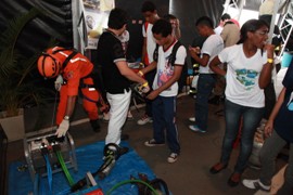 O tema norteia grande parte dos projetos apresentados durante a Semana. Os cadetes do Curso de Formação de Oficiais (CFO), do Corpo de Bombeiros, apresentaram um projeto de eletrificação fotovoltaica, que propõe o desenvolvimento de um modelo sustentável de eletrificação rural gratuita às famílias de baixa renda. Eles explicaram toda a proposta do projeto em duas sessões nos auditórios da SNCT para uma plateia atenta. “Mostramos um projeto em que pessoas de baixa renda poderão ter acesso a energia gratuita e, assim, fazer uso de geladeira, televisão e outros bens, melhorando a qualidade de vida da família”, avaliou o cadete Gomes do CFO.