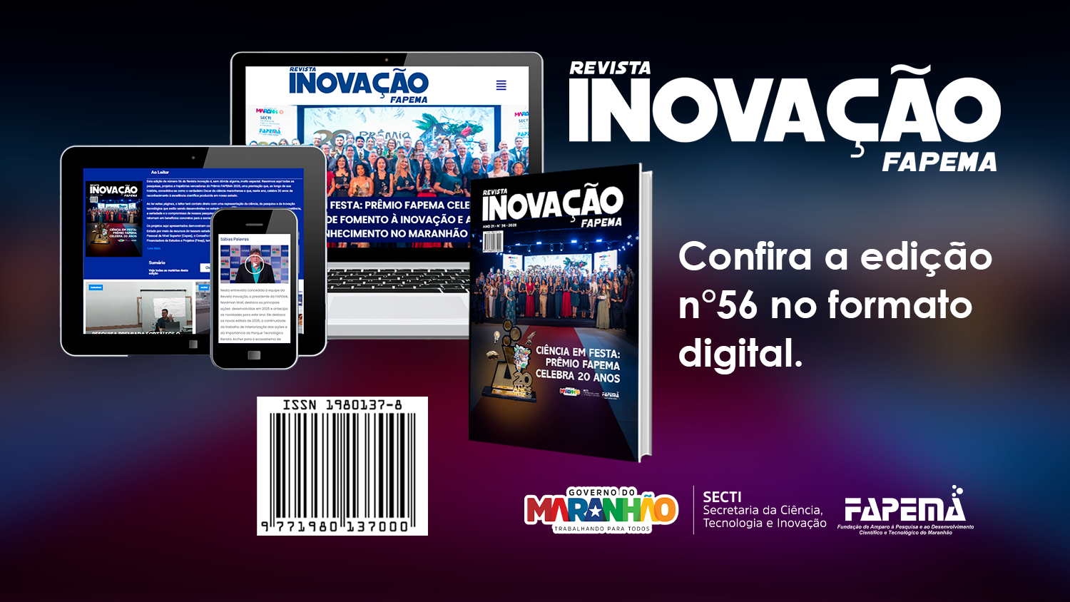 “Esta edição da Revista Inovação traduz a força, a criatividade e a maturidade da ciência produzida no Maranhão. Dar visibilidade aos nossos pesquisadores é estratégico para mostrar que o estado está alinhado aos grandes debates contemporâneos e preparado para construir, com conhecimento e inovação, o Maranhão que queremos no futuro”, destacou o presidente da FAPEMA, Nordman Wall.