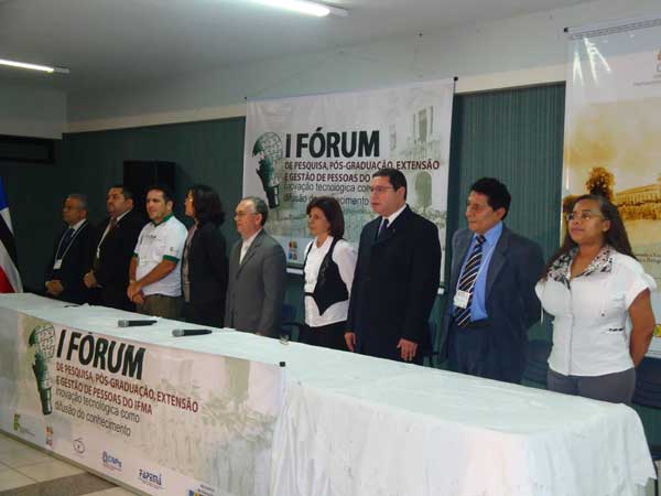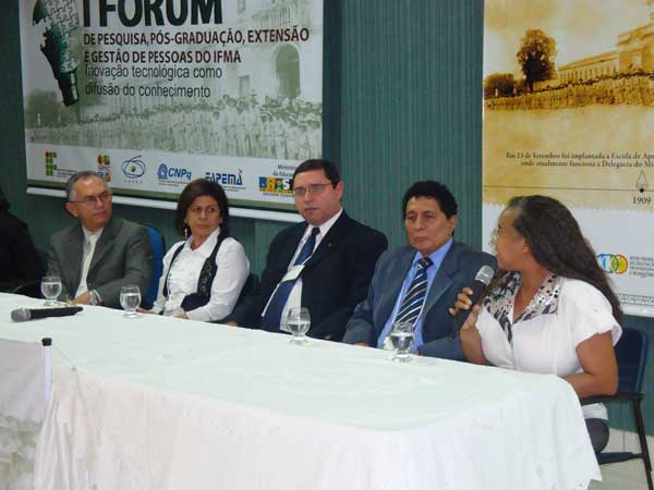 Teve início, nesta última terça-feira (05), o I Fórum de Pesquisa, Pós-Graduação, Inovação, Extensão e Gestão de Pessoas do Instituto Federal do Maranhão. A noite de abertura contou com a participação de nomes ligados a pesquisa e ao empresariado local, dentre eles, o reitor do Ifma, José Ferreira Costa, o assessor especial da Prefeitura de São Luís, Sofiane Labidi, o superintendente do Sebrae – MA, Manoel Pedro, e a assessora de planejamento da Fundação de Amparo à Pesquisa e ao Desenvolvimento Científico e Tecnológico do Maranhão (FAPEMA), Gilza Prazeres.