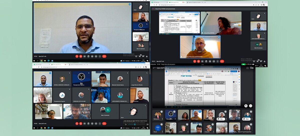 Nesta primeira reunião, aberta pelo diretor Cientifico da FAPEMA, João Bottentuit e coordenada pela assessora de Planejamento, Kyane Cavalcate, o foco das discussões foi a construção do edital Universal 2023. A modalidade on-line possibilitou a ampla participação de pesquisadores dos municípios do interior maranhense na reunião.