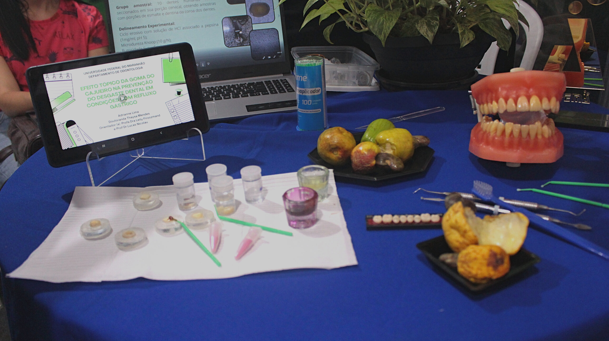 Tratar erosões dentárias criadas pelo refluxo gástrico usando goma extraída do caju. Este é o propósito da pesquisa “Efeito Tópico da Goma do Cajueiro para Prevenção do Desgaste Dental em Pacientes com Refluxo Gastrico”, desenvolvida pela pesquisadora e graduanda em Odontologia, Adrianne Caroline Santos, e coordenado pela professora doutora Leily Macedo Firoozmand. O estudo é desenvolvido com o apoio financeiro do Governo do Estado por meio de edital da Fundação de Amparo à Pesquisa e ao Desenvolvimento Científico e Tecnológico do Maranhão (FAPEMA).