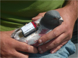 Pombos-correio (Columba livia) têm sido muito utilizados como espécies modelo em estudos de navegação de animais e, mais recentemente, em uma pesquisa pioneira sobre a navegação social. Pombos são conhecidos para desenvolver rotas homing – de regresso ao local de origem – quando treinados. Estas “assinaturas vôo” foram utilizadas para investigar a interação social entre os pares de pássaros em vôo conjuntos.